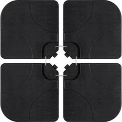 : – Lot de 4 dalles à lester pour parasol de jardin – En polyéthylène haute densité A remplir avec de l’eau ou du sable pour ajouter du poids et faire un lestage efficace : Capacité maximum par dalle : 13kgs.