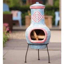 - Y compris un support en acier enduit de poudre noire et un couvercle de cheminée en argile