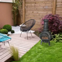 Passez dedouces soirées d’été à l’extérieur avec ce poêle de jardin en anthracite. Lacheminée de terrasse en fonte vous permet de vous détendre dans le jardin.Asseyez-vous près du feu crépitant et réchauffez-vous. Le brasero mexicaindécoratif réduit les étincelles grâce au pare-étincelles. Vous pouvez égalementcontrôler l’intensité du feu grâce à la valve d’air réglable. Grâce autisonnier pratique, vous pouvez facilement réajuster le matériau chauffant.