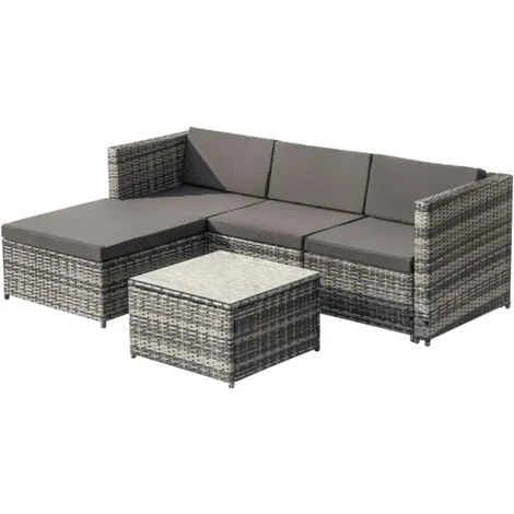 Salon De Jardin 7 Pcs Avec Coussins Résine Tressée Gris VidaXL