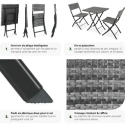 - Ensemble de jardin moderne composé d’une table et de deux chaises recouvertes de résine tressée