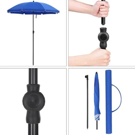 Choisissez le parasol droit inclinable aussi bien à droite comme à gauche pour l’adapter à l’horaire de son utilisation. Il mesure 1,6 mètres en diamètre et est haut de 2,1 mètres afin d’accueillir 2 à 3personnes indépendamment de leur petite ou grande taille. Son mât est fait en acier antirouille. Le tissu est hautement protecteur anti UV UPF50+. Ce parasol est muni d’une ouverture au centre pour mieux résister au vent.
