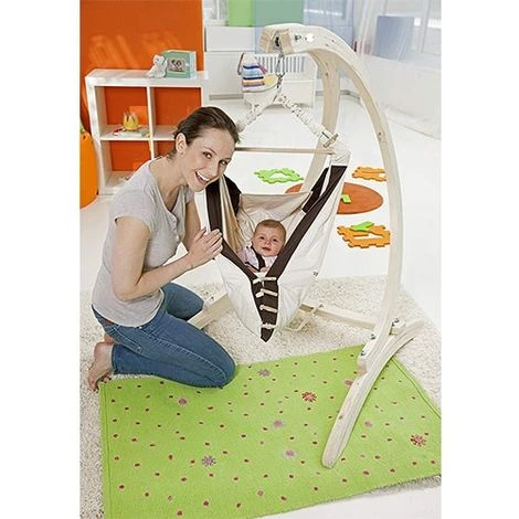 La plus belle combinaison est Kangoo-Carrello Baby mais aussi celle avec le hamac bébé Kaya natura qui y est parfaitement suspendu (hamac non inclus). Le support pour hamacs bébés joliment arqué est en épicéa non traité.