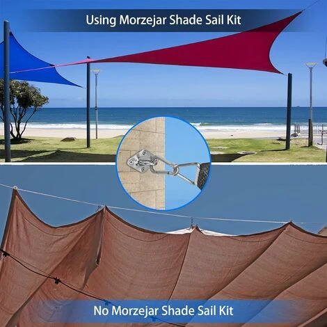 Tendeur réglable durable : notre kit d’installation de voiles d’ombrage comprend des tendeurs réglables pour serrer la voile lors de l’installation. Vous pouvez choisir la distance entre le mur, le poteau, le point où il est fixé pour une longueur de 20 à 30 cm