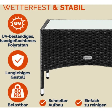 La table est en polyrotin résistant aux UV et dispose ainsi d’une