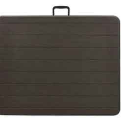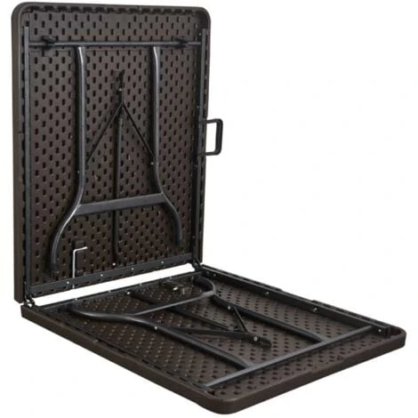 - Pliante, cette table imitation bois est facilement transportable à l’aide de sa solide poignée.