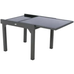 Table PIAZZA de marque HESPERIDE conçue pour l’extérieur assortie aux fauteuils, chaises et salon détente de cette collection. Table extensible pouvant recevoir jusqu’à 8 convives. Pliée, elle ne mesure que 90×90 cm et encombre peu mais dépliée, elle mesure 180×90 cm. Hauteur 75 cm. Extensible grâce à son 2ème plateau qui coulisse sous le plateau principal en quelques instants. Structure coloris noir très légèrement pailleté de blanc dit graphite, en aluminium traité époxy contre la rouille. Plateau coloris gris foncé dit anthracite en verre trempé pour la solidité. A monter soi-même. Table vendue seule sans fauteuil.