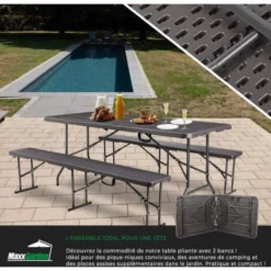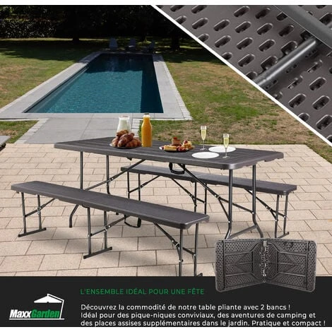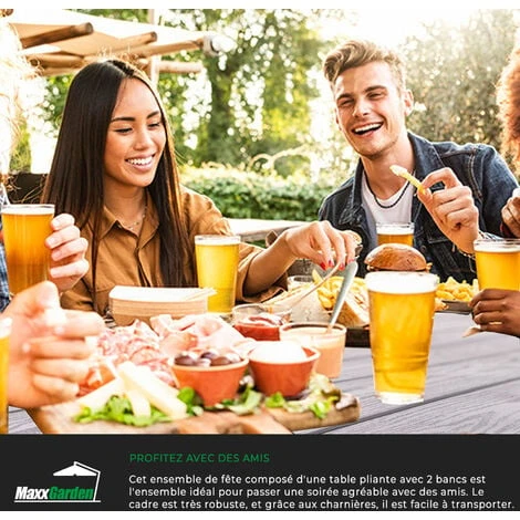 MaxxGarden Table pliante – set de pique-nique pliant – avec 2 bancs – noir