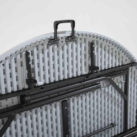 Table pliable plastique ronde de 150 cm de diamètre. Cette table pliante peut accueillir jusqu’à 8 personnes. Initialement conçue pour les professionnel de l’événementiel, cette table sera parfait en table d’appoint pour organiser vos réception. Cette table peut être utilisée en extérieur et peut supporter jusqu’à 130 kg grâce à sa structure en acier époxy et son plateau en PEHD (résine plastique). Les pieds de la table se rabattent et le plateau se plie en deux, vous pourrez alors transporter la table au format valise grâce à sa poignée intégrée.