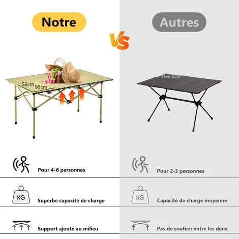 Robuste et ultralégère – cette table est durable, imperméable, résistante à la corrosion, facile à nettoyer ; des joints et des connecteurs solides, ainsi que des pieds en caoutchouc antidérapants rendent cette table plus stable, et les pieds ne se plieront pas, ne se plieront pas et ne se désengageront pas sur différents terrains; très facile à installer, il suffit d’ouvrir le cadre de base et de fixer le plateau de la table.