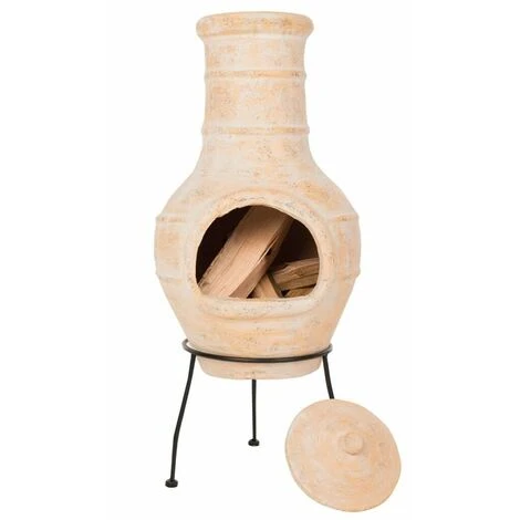 Y compris un support en acier enduit de poudre noire et un couvercle de cheminée en argile