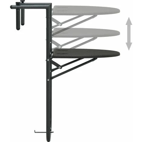 Cette table de balcon suspendue constituera un excellent supplément à votre balcon. Elle servira de table basse pour placer vos boissons ou d’un plan de travail pratique pour ranger des articles tels que des outils de jardinage et des plantes en pot. Fabriqué en plastique durable, le dessus de table est résistant aux intempéries et facile à nettoyer. Son design à l’aspect du rotin ajoute une touche de charme naturel à votre balcon. Avec un cadre en acier robuste, la table est très stable. De plus, la hauteur peut être ajustée sur 3 niveaux pour satisfaire vos exigences. La table peut être pliée pour économiser de l’espace lorsqu’elle n’est pas utilisée.