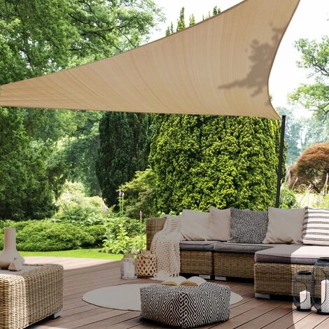 Offrez-vous un espace ombragé à petit prix grâce au voile d’ombrage triangulaire et ses belles dimensions de 5x5x5 M. Sa grande taille vous permet de vous protéger du soleil en pleine journée ainsi que de l’humidité une fois la nuit tombée. Avec son coloris tendance, vous pourrez attacher la toile où bon vous semble : la couleur sable se marie à la perfection avec vos extérieurs et propose une occultation discrète et moderne ! Grâce à son système d’attache facile, vous pourrez fixer votre voile d’ombrage très rapidement : chaque angle est équipé d’un anneau triangle en acier inoxydable (4x4x4 cm) et 3 cordes de 1.5M de long sont également fournies. La matière en polyéthylène haute densité est à la fois légère et résistante à la déchirure. L’air peut circuler librement sans vous apporter un sentiment d’étouffement grâce à sa composition dite respirante. Dimensions du voile d’ombrage 5x5x5 M sable- Dimensions totales : Longueur 500 x largeur 500 x Hauteur 500 CM- Longueur de chaque corde : 150 CM x épaisseur 5 MM- Densité de la toile : 180 gr/m²- Matière en polyéthylène haute densité (HDPE)- Traitement anti-UV- Indice UV 3- Forme de la toile : triangulaire- Se fixe aux arbres, murs, poteaux, etc. Besoin d’un kit de fixation ou d’un mât pour votre voile ? Rendez-vous sur notre boutique en ligne pour découvrir nos solutions de fixation !Découvrez également nos autres modèles et coloris de voiles d’ombrage et d’ombrières disponibles sur notre boutique en ligne.
