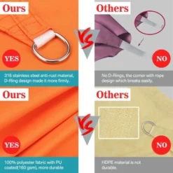 This product is only waterproof, not completely waterproof, please pay attention, thank you.Shade Sail WaterproofFeel Comfortable in Hot Dayssun shade sail could bring your outdoor spaces a totally different experience during hot summer days. Rather than hiding away during the best parts of the day, with our sail shade you can spend time out of doors enjoying the fine weather. The shade shelter provides 95% UV block . Heat and glare are significantly reduced so the shade sails can make you comfortable even in the hottest days.