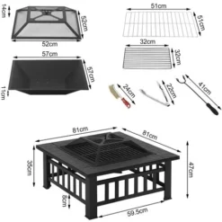 Stabilité et sécurité : Les pieds robustes supportent bien ce brasero carré pour offrir une structure solide et stable. Le couvercle en maille de fer est fourni pour éviter des blessures en raison des étincelles éventuelles