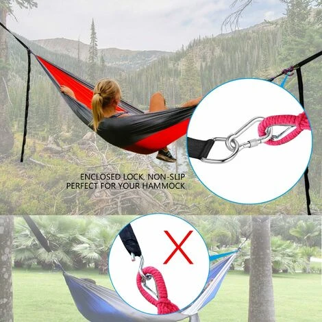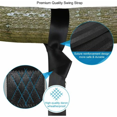 Mousqueton et sac de rangement : les deux mousquetons en acier inoxydable nickelé ont une bonne résistance à la rouille et à la corrosion. Le sac de rangement pratique est adapté pour ranger les sangles de balançoire pendant le camping ou les voyages.