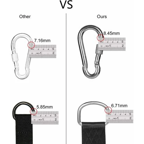 Qualité supérieure : ces sangles de suspension sont en polyester haute résistance, imperméables et résistantes aux intempéries. Les anneaux et crochets en acier inoxydable sont plus grands que les autres sangles, ce qui les rend plus solides et plus durables.